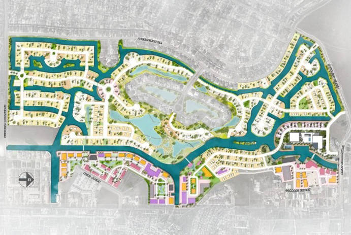 The Lake Padre development is a $700 million planned mixed-use project featuring residential, retail, entertainment, a marina, and public access. Centered around Park Road 22 and State Route 361, it includes pedestrian and golf cart bridges over the new Don Patricio bridge.