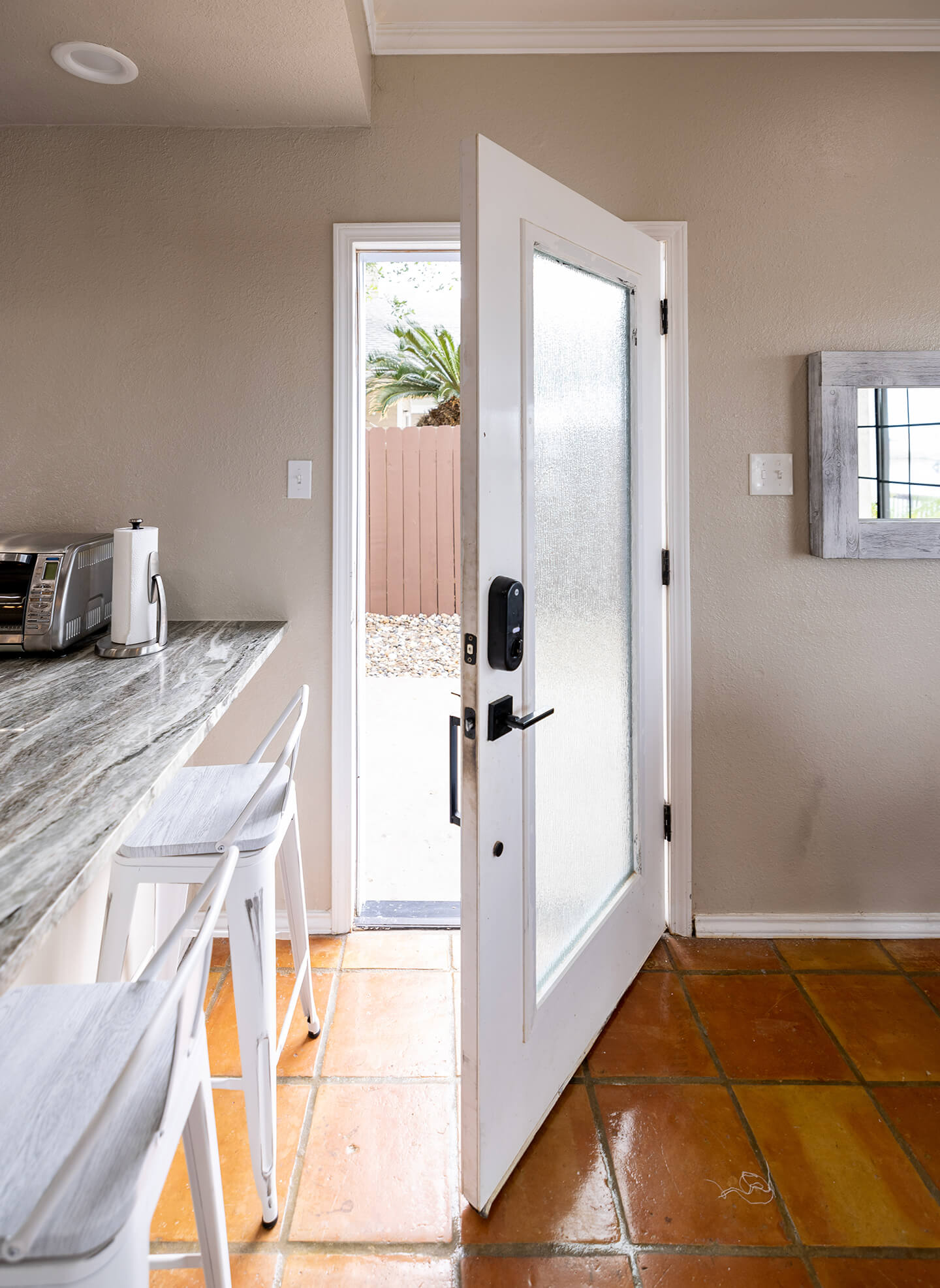 This charming 1-bedroom unit has a tan and brown color palette. The kitchen is brand new and includes a stunning waterfall granite breakfast bar. The bedroom offers a modern design, built in wood headboard and dimmable LED lited moulding. The unit boasts an open layout with abundant natural light, and the bedroom and bathroom have been fully renovated, including a large shower, with a black marble inlay and a granite vanity. Guests enjoy access to a shared pool and hot tub, along with expansive outdoor areas. The property also offers 150 feet of private waterfront, perfect for fishing in our own well-known honey hole. You’ll often spot seagulls, pelicans, herons, and cranes as part of the serene coastal atmosphere.